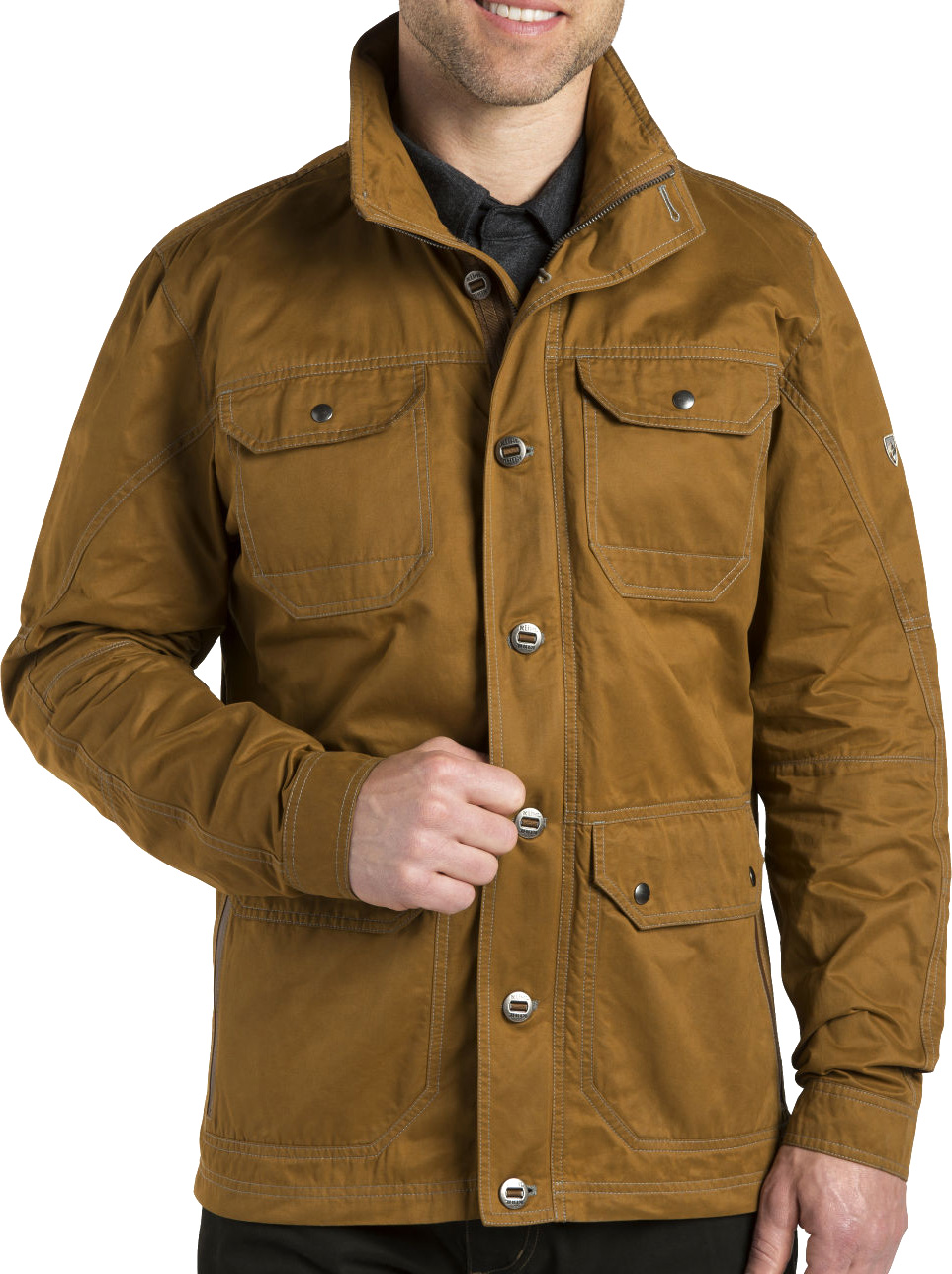 Style so smooth it s barely legal the men s kuhl kollusion jacket has water resistant breathable fabric with polyurethane coating and synthetic wax for soft durable weather protection all year long.
